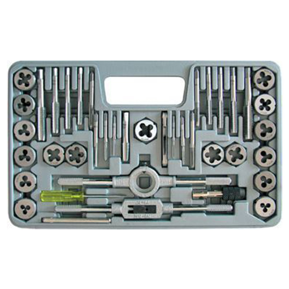 2 метчикодержателя, плашкодержатель 1”, резьбомер, отвертка, 17 метчиков и 17 плашек.