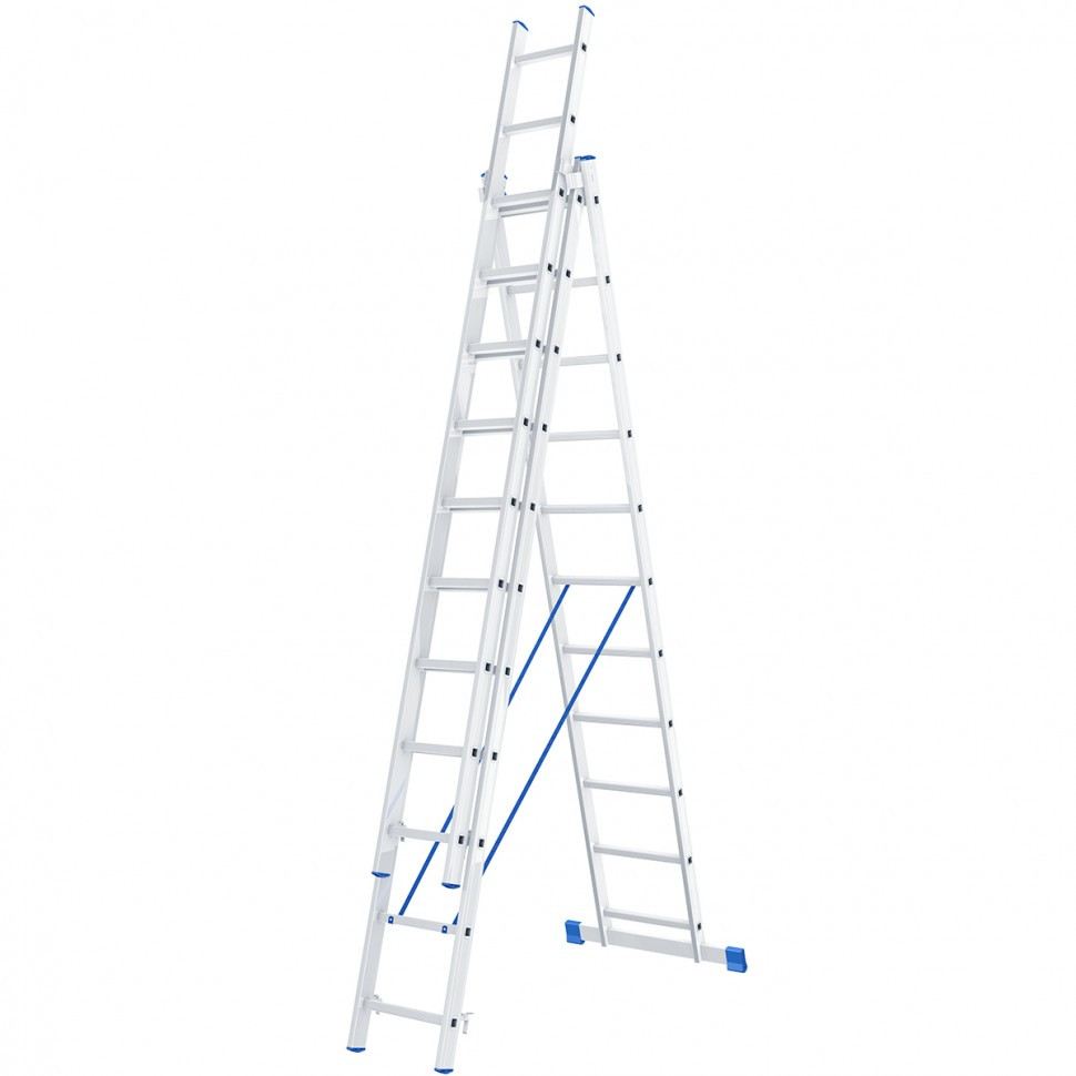 - Лестница алюминиевая трехсекционная Сибртех 3 х 11 ступеней 97821