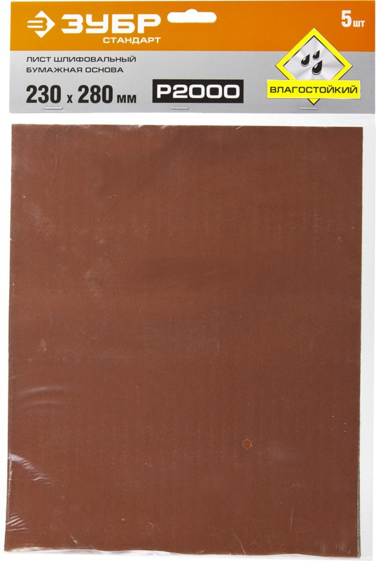 Лист шлифовальный Зубр Стандарт 35417-2000 Р2000 на бумажной основе водостойкий 230х280 мм 5 шт