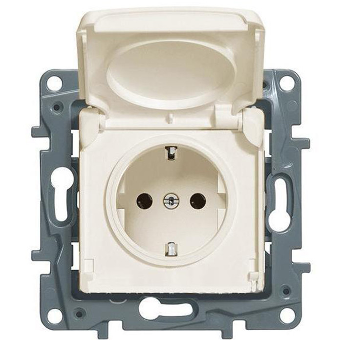 Механизм розетки Legrand Etika 672332 одноместный с заземлением и защитными шторками с крышкой Слоновая кость