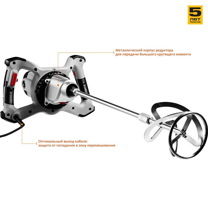 Миксер строительный Зубр Мастер МР-1400-2 имеет металлический корпус редуктора, что обеспечивает большую прочность и луч…