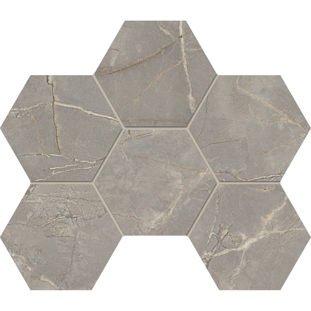 Мозаика из керамогранита Estima Bernini BR03 Hexagon Grey матовая 285x250 мм