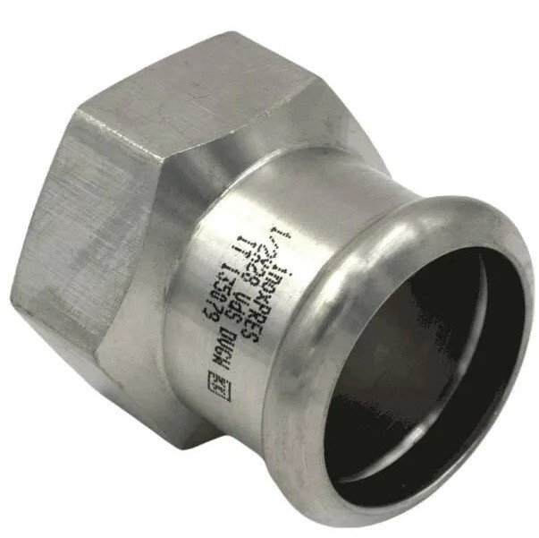 Муфта RM Inoxpres AISI 316L пресс/внутренняя резьба устанавливается на трубы из нержавеющей стали марок 316L, 304L и 444, обеспечивая надежное и герметичное соединение.