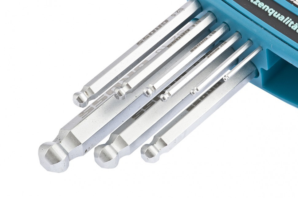 Набор удлиненных имбусовых ключей Gross 16403 из стали S2, с шаром и сатинированным покрытием, состоит из 9 предметов для работы с крепежами, оснащенными шлицами HEX 1,5-10 мм. Благодаря своей длине и Г-образной форме ключи позволяют действовать в труднодоступных местах и экономить усилия при монтаже и демонтаже крепежей. Набор пригодится при сборке мебели, для ремонта велосипедов и различного оборудования.