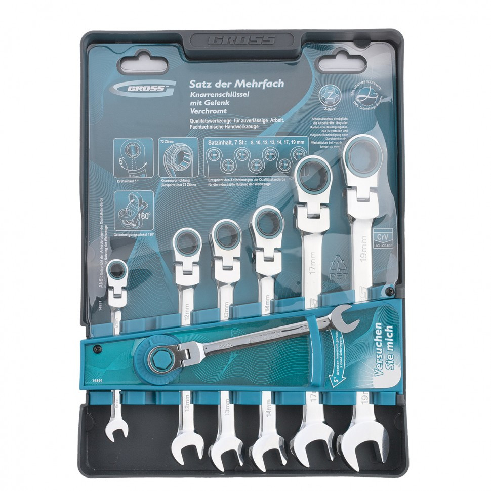 Набор ключей комбинированных с трещоткой Gross 14891 8-19 мм 7 штук