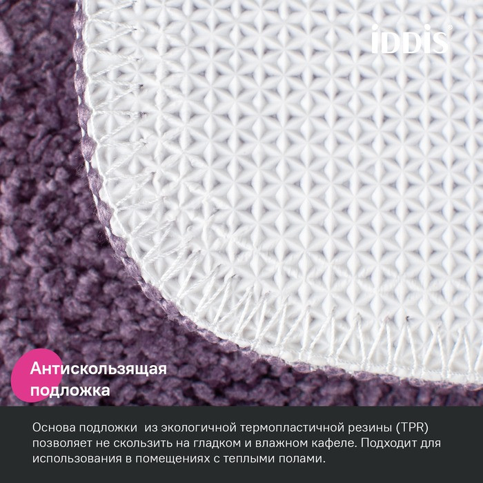 Набор ковриков для ванной комнаты Iddis Promo PSET01Mi13 из двух мягких ковриков для ванной красивого фиолетового цвета с плотным невысоким ворсом (1 см), очень приятных на ощупь. Размеры ковриков 650х450/450х450 мм. Ворс из микрофибры отлично держит форму, легко чистится и быстро сохнет. Коврики предназначены для ванной и для туалета (маленький коврик имеет вырез под унитаз).