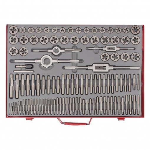 Набор метчиков и плашек Matrix 773110 М2-М18 110 шт металлический кейс - резьбонарезных инструментов и держателей для них. Набор метчиков и плашек позволяет нарезать внутреннюю и наружную резьбу, а также используется для восстановления сорванной резьбы. Благодаря наличию метчиков разного типа набор подходит для работы как со сквозными, так и с глухими отверстиями. Набор будет полезен в сервисном центре, авторемонтной мастерской, а также в быту.