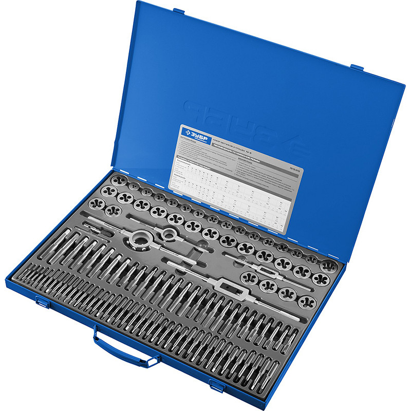 - Набор метчиков и плашек Зубр Профессионал 28110-H110 110 предметов