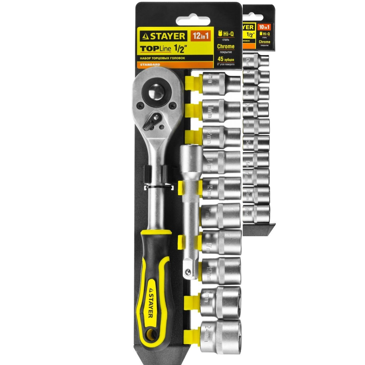 Набор инструментов торцовые головки STAYER 27750-H12, предназначен для монтажа и демонтажа резьбовых соединений при ремонте автомобилей и других изделий. Хромированное покрытие. Hi-Q сталь. Профиль FLANK для быстрого и точного захвата крепежа.