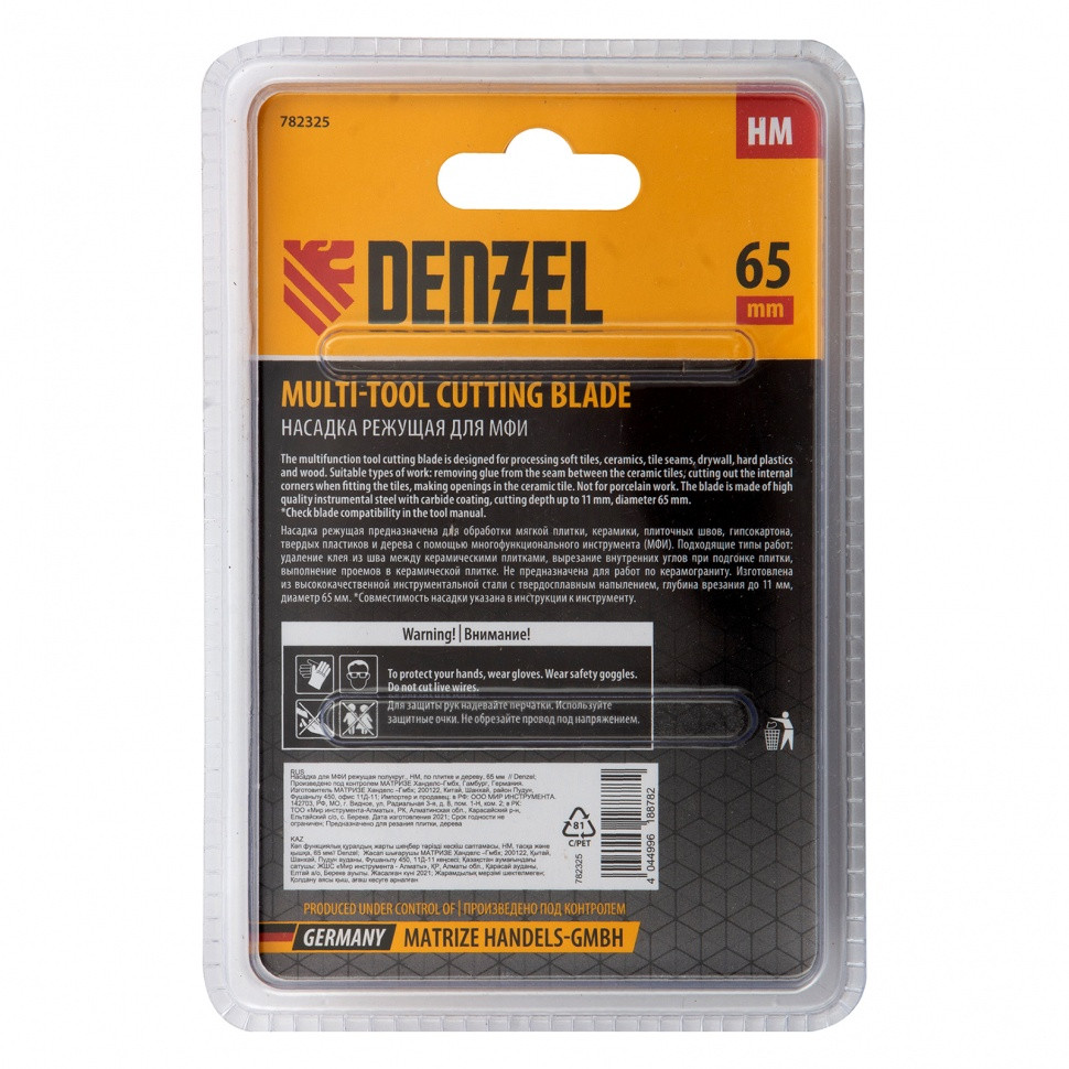 Насадка для МФИ Denzel HM 782325 по плитке и дереву - предназначена для обработки мягкой плитки, керамики, плиточных швов, гипсокартона, твердых пластиков и дерева с помощью многофункционального инструмента (МФИ).