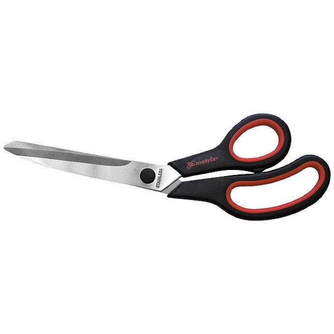 Ножницы хозяйственные Matrix 79135 - наиболее традиционные хозяйственные ножницы с двухкомпонентными эргономичными рукоятками и остро заточенными лезвиями длиной 100 мм. Предназначены для резки бумаги, картона, различной ткани. Оригинальная геометрия расположения рукояток — их изогнутость — позволяет работать с обойными листами большой длины.