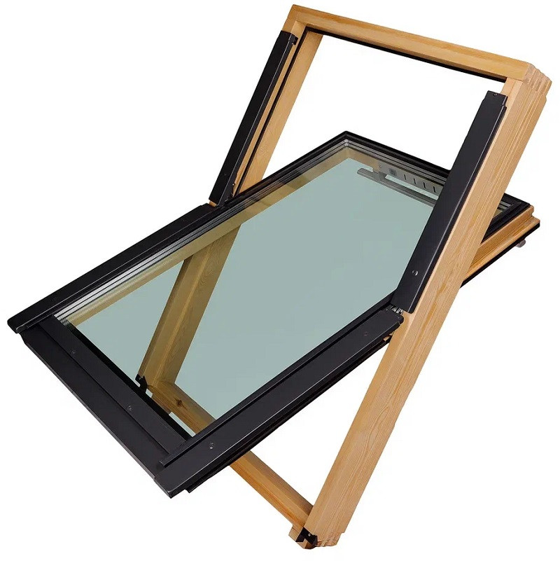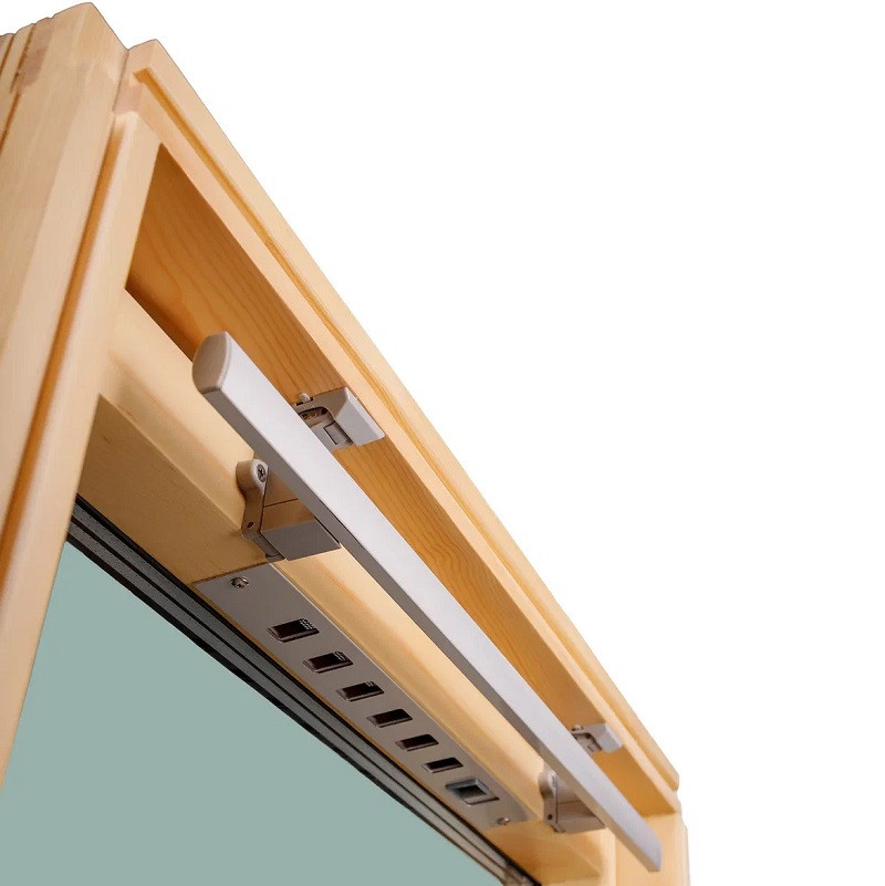 Окно мансардное Lufkad SWO 550x980 мм ручка сверху самая популярная конструкция окна для крыши. Усиленные стёкла для климата России. Можно проветривать, не открывая. Клееный брус высокой плотности гарантирует прочность конструкции.