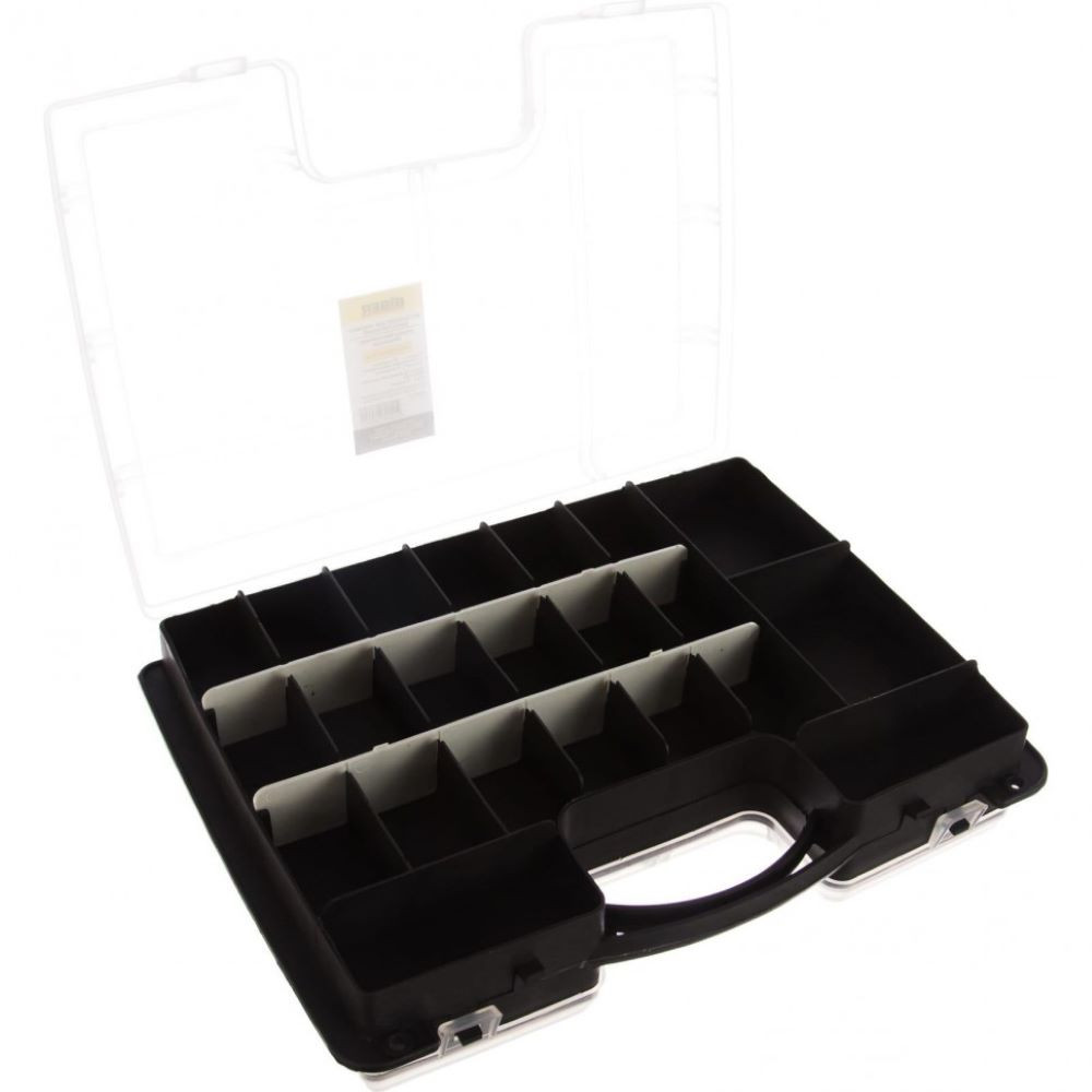 Прозрачная крышка позволяет видеть расположение крепежа внутри. защелки надежно защищают чемоданчик от непреднамеренного открывания.