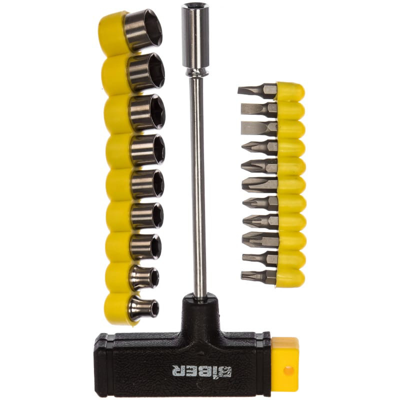 - Отвертка Biber 85553 с Т-образной рукояткой с набором бит и головок