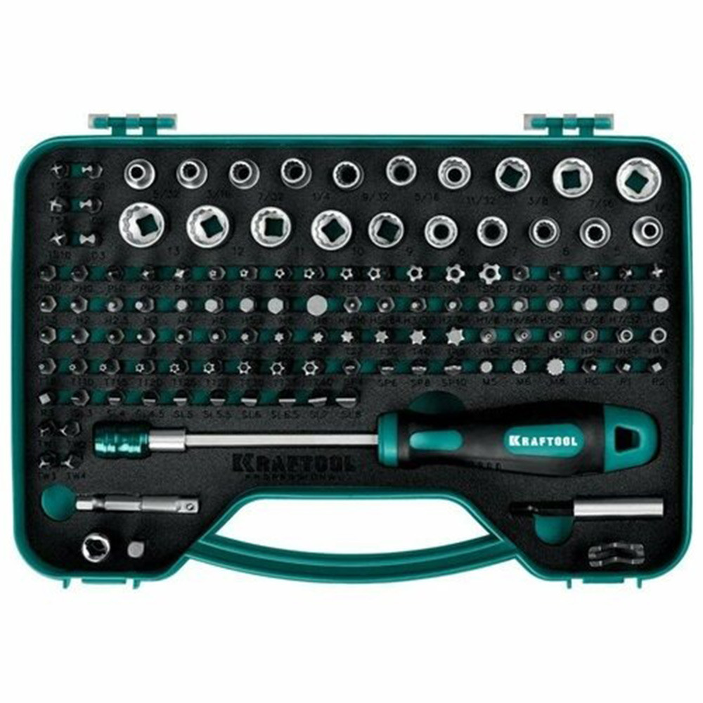 Универсальный набор бит и головок Kraftool для профессионального применения в комплекте с ручным и электроинструментом. Максимальная комплектация бит и головок для любого вида крепежа.