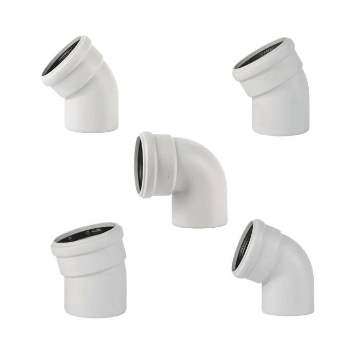 - Отвод (PP-MD) бесшумный светло-серый Skolan dB SKB Дн 58х15гр (DN56) б/нап в/к Ostendorf 332100
