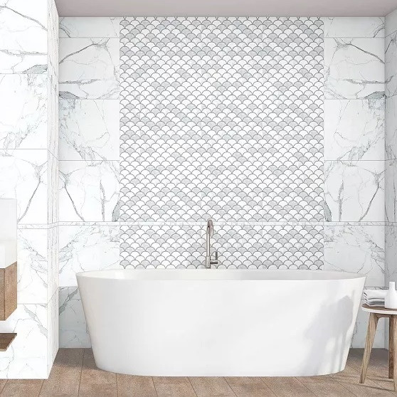 Панель стеновая ПВХ Кронапласт Unique Чешуя белый мрамор 2700х250х8 мм 12 шт