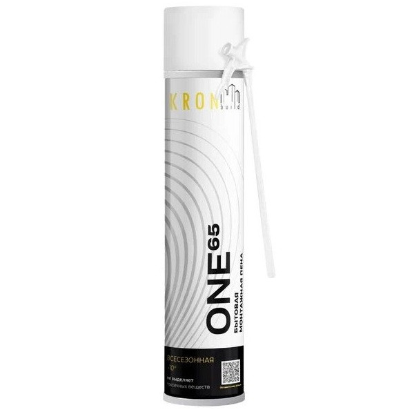 Пена монтажная бытовая Kronbuild One 65 FHO65 всесезонная с хорошей механической прочностью, также обладает отличной адгезией к большинству строительных материалов.