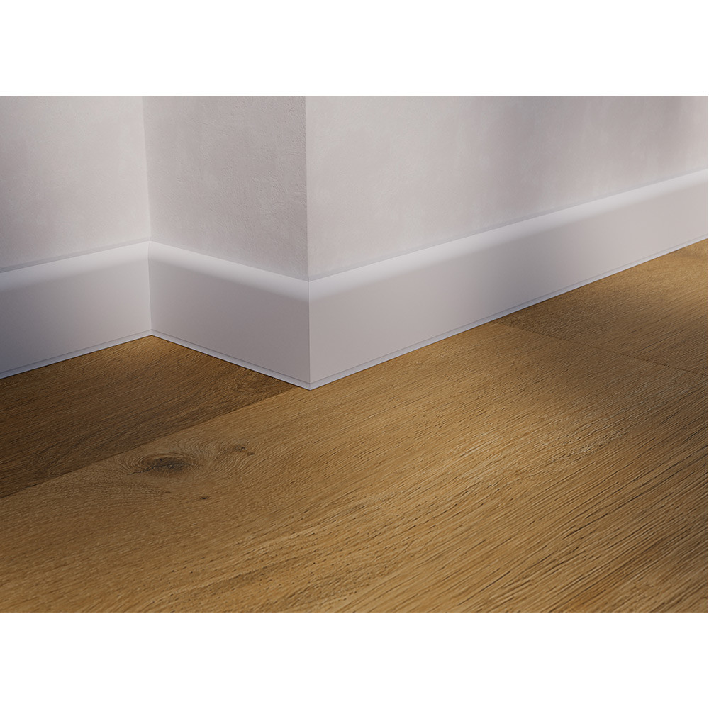 Напольный плинтус Salag Alpha — это идеальное решение для создания элегантного и завершенного интерьера. Изготовленный из высококачественного гибридного ПВХ, он сочетает в себе превосходную гибкость, устойчивость к ударам и влаге, что делает его идеальным выбором как для жилых комнат, так и для помещений с интенсивной эксплуатацией, включая офисы и общественные зоны.
