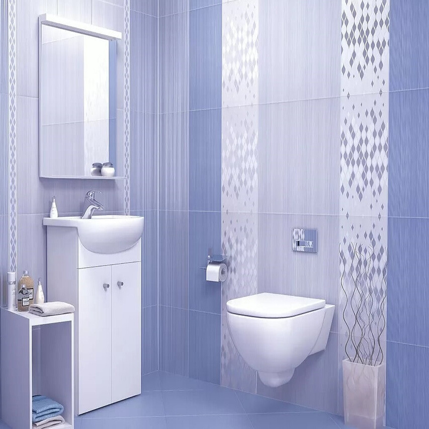 Плитка применяется для облицовки стен внутренних помещений: ванной, туалета.