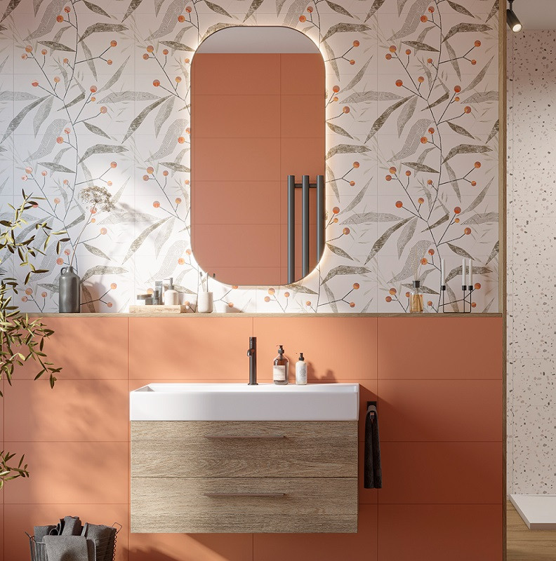 Плитка керамическая Creto Palette Pepper 00-00-5-18-01-25-3655 600х300 мм - яркая палитра коллекции и подобранные рисунки позволяют использовать эту плитку в интерьерах в стиле ретро, эклектика и, конечно, mid-century modern в сочетании с винтажной мебелью и сантехникой.