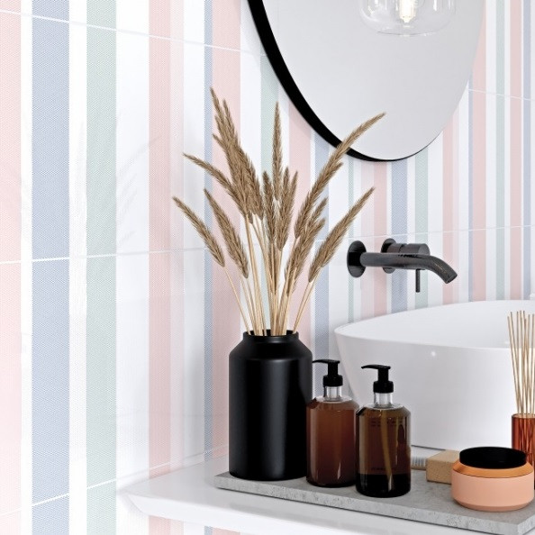 Для коллекции керамической плитки Trendy от немецкого производителя Meissen были выбраны три базовых цвета в деликатных, припыленных оттенках: розовый, голубой и зеленый. Все они сочетаются между собой и прекр…