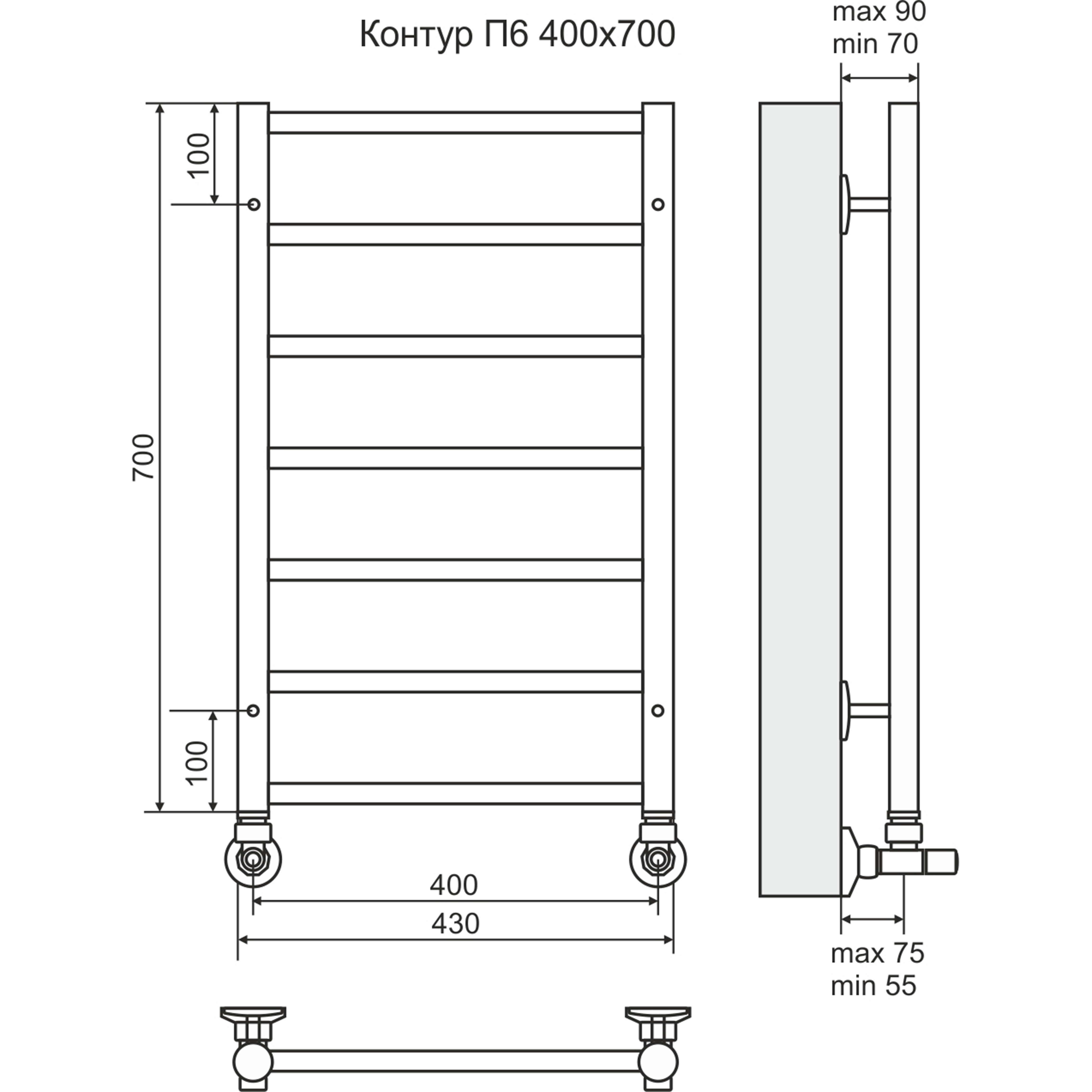 - Полотенцесушитель водяной Terminus Контур 4670078529640 П7 400х800 мм