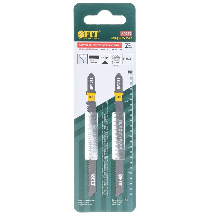 Полотно по дереву Fit Bimetal 40953 T101AIF 100/77х1,7 мм 2 шт предназначено для электролобзика. Применяется для резки древесины, облицовки, ламината, полимеров и т.д.