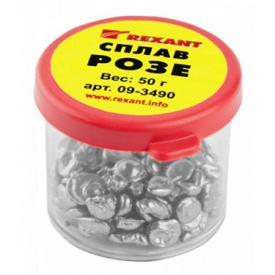 Сплав Розе Rexant - гранулы 50 г применяется преимущественно для пайки деталей чувствительных к перегреву, а также для пайки алюминия с медью, сплавов алюминия между собой, никеля, латуни, бронзы, медных и медно-никелевых сплавов с посеребренной керамикой, посеребренных деталей и ювелирных изделий. Представляет собой небольшие гранулы серебристого цвета. Сплав имеет низкую температуру плавления +94 °C, поэтому расплавить его можно даже в горячей воде. Широко используется в полупров…