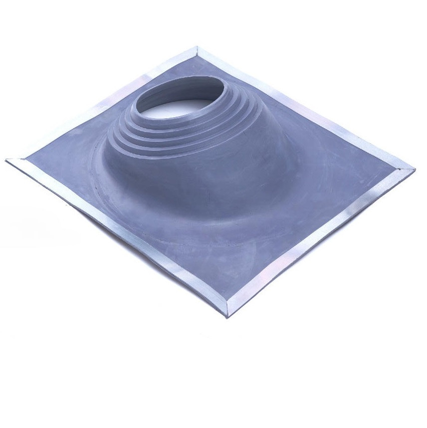 Проходка кровельная угловая Borge №2 серая простое и надежное решение для герметизации круглых труб и выводов на кровлю. Состоит из алюминиевого фланца и гофры из ЭПДМ-резины, а с обратной стороны имеются канавки для заполнения кровельным герметиком.