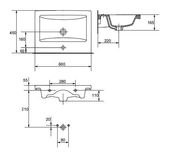 - Раковина встраиваемая Cersanit Como 60 S-UM-COM60/1-w 600х450 мм