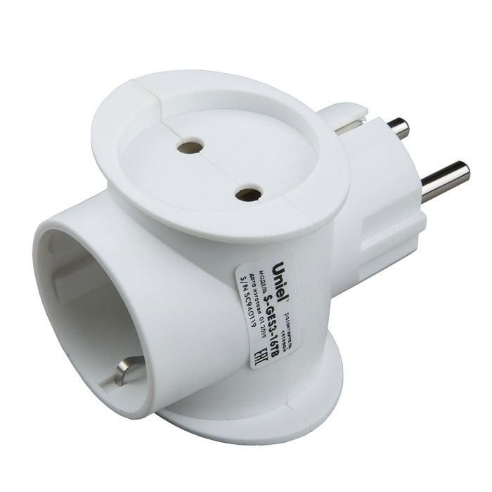 - Разветвитель сетевой Uniel Standard S-GES3-16TB 3 розетки с заземлением и выключателем 3500 Вт