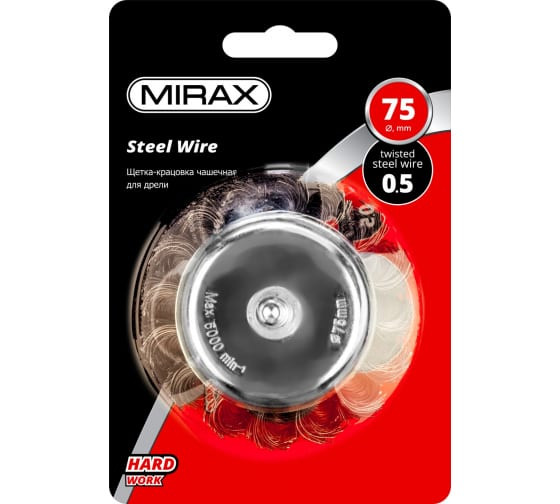 Щетка чашечная для дрели Mirax 35148-075 со шпилькой с жгутированная 75 мм