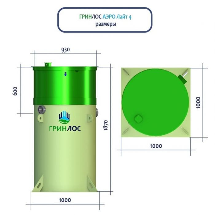 Септик Гринлос Аэро Лайт 4 1440 это самотечная модель аэрационной установки биологической переработки с залповым сбросом. Тип сброса — самотечный. Это значит, что очищенная вода сливается по трубе, которая идет под наклоном в сторону точки сброса. Применить это решение можно при наличии дренажного колодца, глубокого оврага, поля фильтрации, где вода уходит в грунт и не застаиваться. Станция подходит для монтажа во все виды почв: песок, глина, суглинок, грунты с высоким ур…