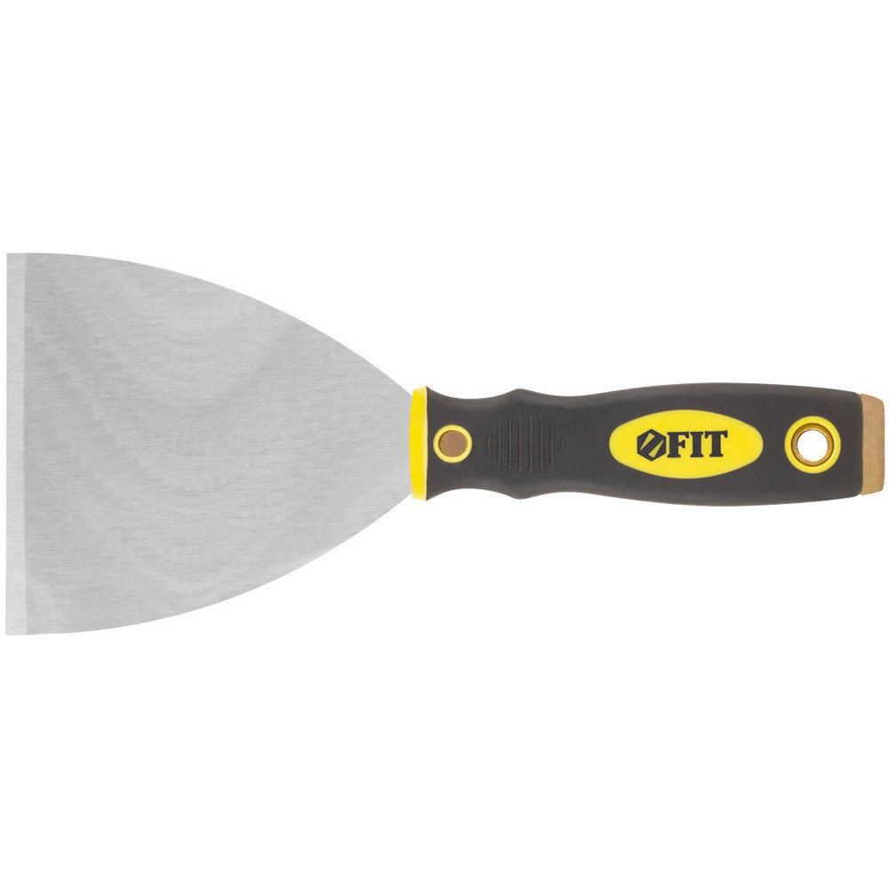 Шпатель для удаления ржавчины Fit Профи 6674 100 мм - является простым в применении приспособлением, которое позволяет удалять ржавчину с металлических поверхностей. Твёрдое лезвие из полированной усиленной стали HRC 72-78, заточенная грань, мягкая двухкомпонентная ручка с металлическим бойком.