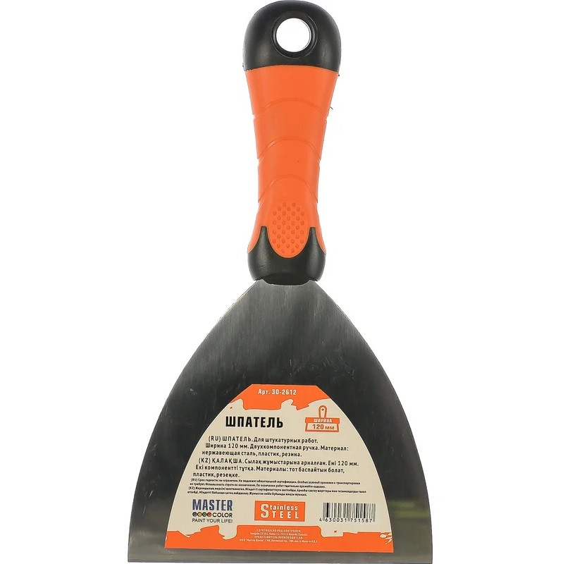 Шпатель 120 мм Master Color 30-2612 с прорезиненной 2К-ручкой - инструмент, который необходим для устранения дефектов на оштукатуренной стене. За счет небольшой ширины позволяет приложить максимальное усилие для затирки швов.