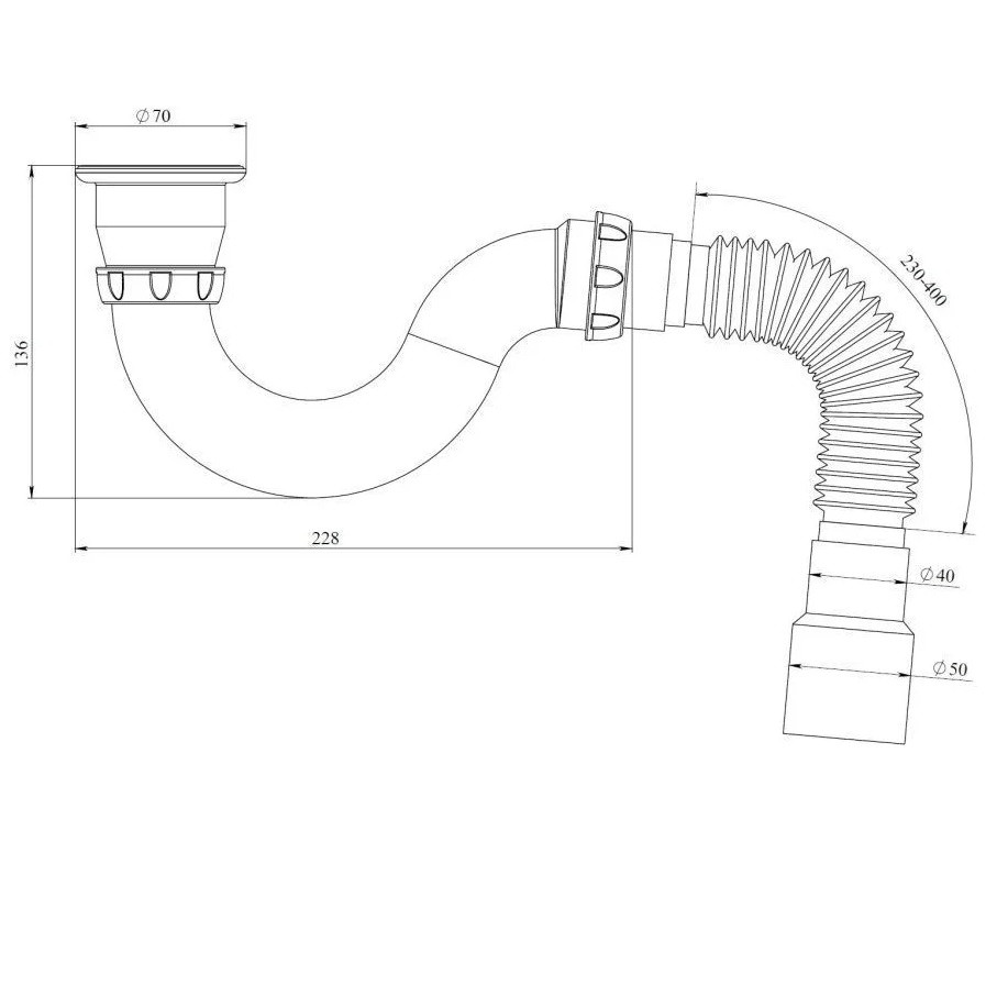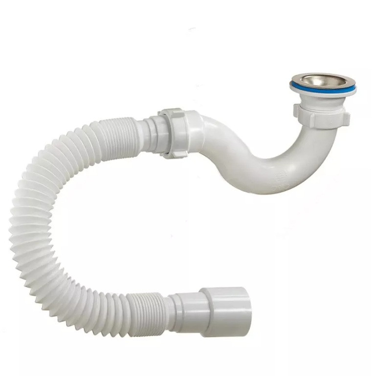 Гофрированный сифон имеет в своей основе гофрированный шланг. Гибкость шланга позволяет расположить сифон в пространстве под раковиной любым удобным способом, независимо от расположения канализационной трубы.