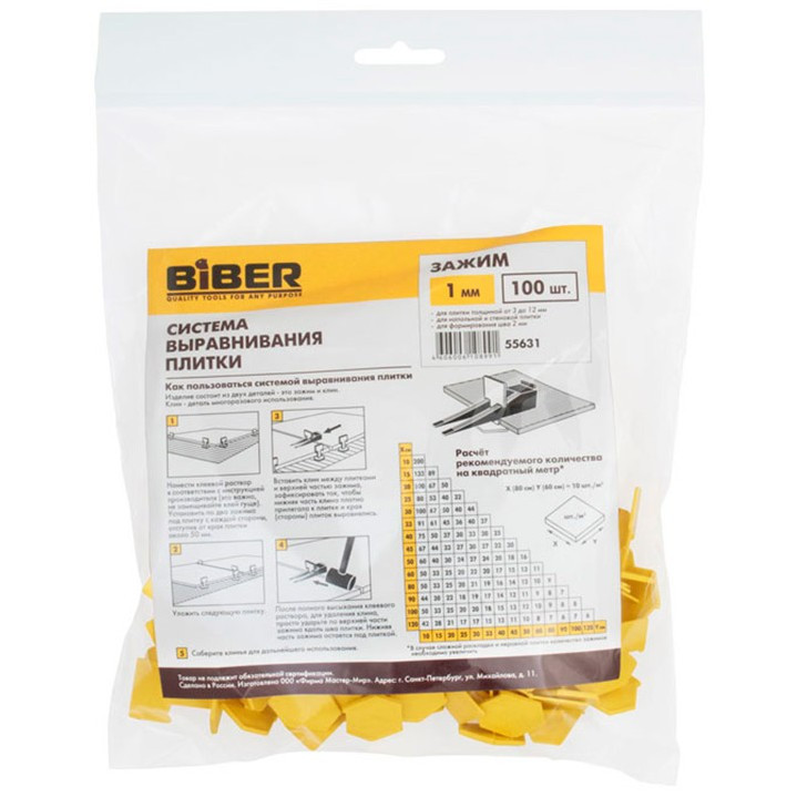 Система выравнивания плитки Biber 55631 зажим 1 мм 100 штук