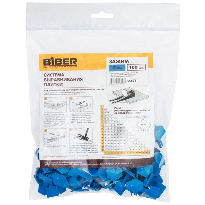 Система выравнивания плитки Biber 55633 зажим 2 мм 100 штук