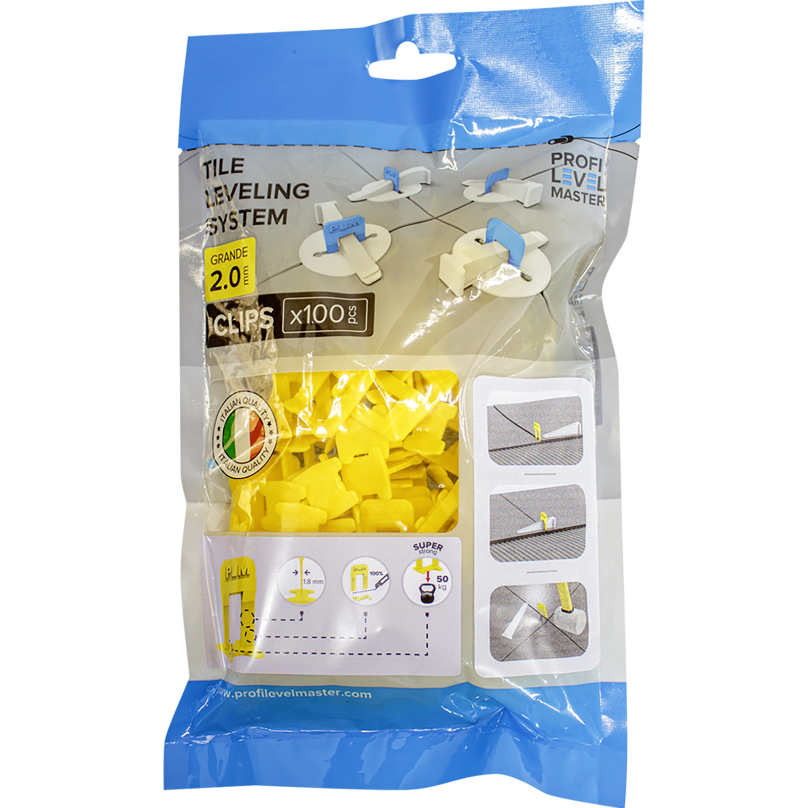 П-образный зажим PLM Grande2 мм является частью новейшей итальянской системы выравнивания плитки.