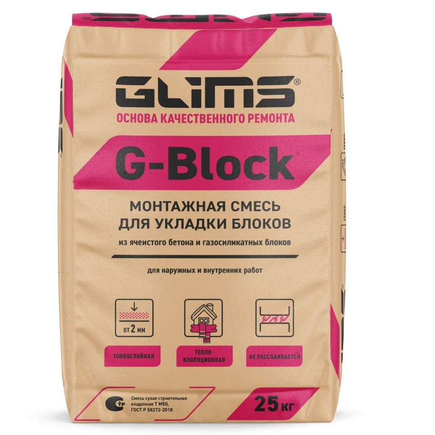 - Смесь монтажная Glims G-Block для укладки блоков 25 кг