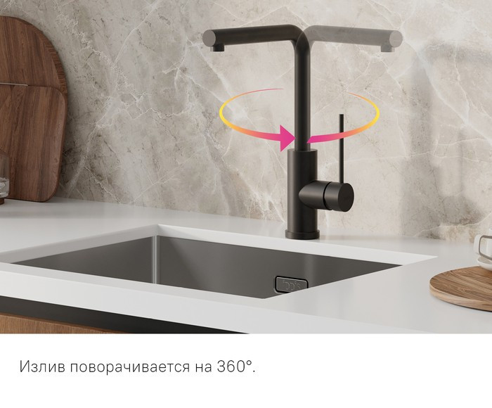 Стильный черный смеситель от торговой марки Iddis серии Rule – премиальный востребованный дизайн и функционал по адекватной цене. Продумано до мелочей: угол открывания ручки 90 градусов позволяет комфортно пользоваться смесителем, даже если он установлен близко к стене. Когда ручка расположена строго вертикально, идет холодная вода, для подачи горячей воды ручку нужно повернуть на себя.