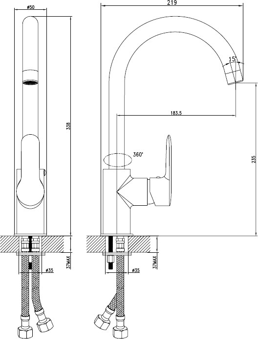 Вращение излива ?В зависимости от конструкции излив может быть: