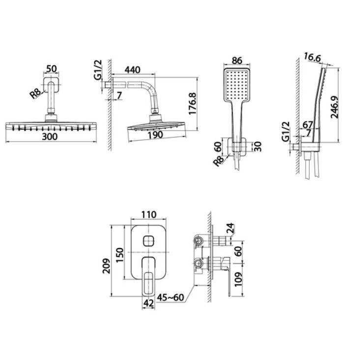 - Душевой шланг, Ручной душ, Верхний душ