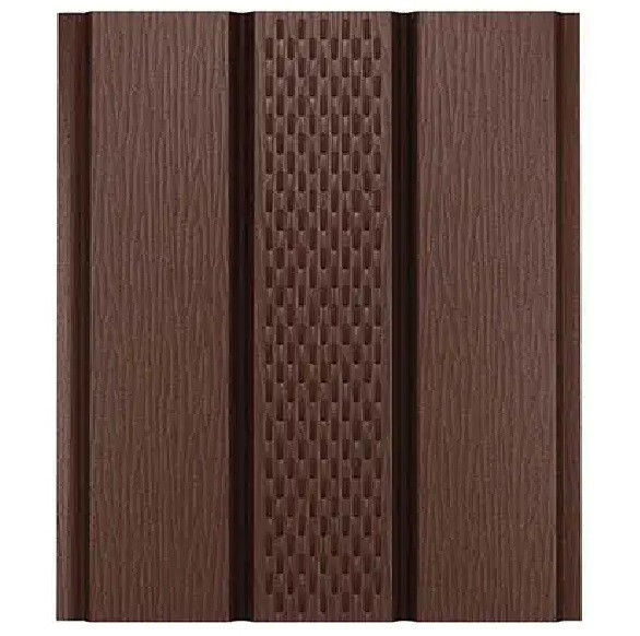 Софит Aquasystem Rooftop Бархат RAL 8017 с центральной перфорацией 2400х303 мм стальной предназначен для подшивки карнизного и фронтонного свесов. Является и декоративным элементом, поскольку скрывает нижнюю часть подкровельного пространства и придает ей аккуратный и законченный вид.