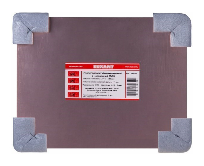 - Стеклотекстолит двухсторонний Rexant 09-4063 35 мкм 200x250х1,5 мм