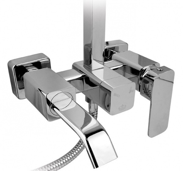 - Душевой шланг, Душевая лейка, Держатель для душевой лейки, Смеситель, Душевая штанга, Верхний душ