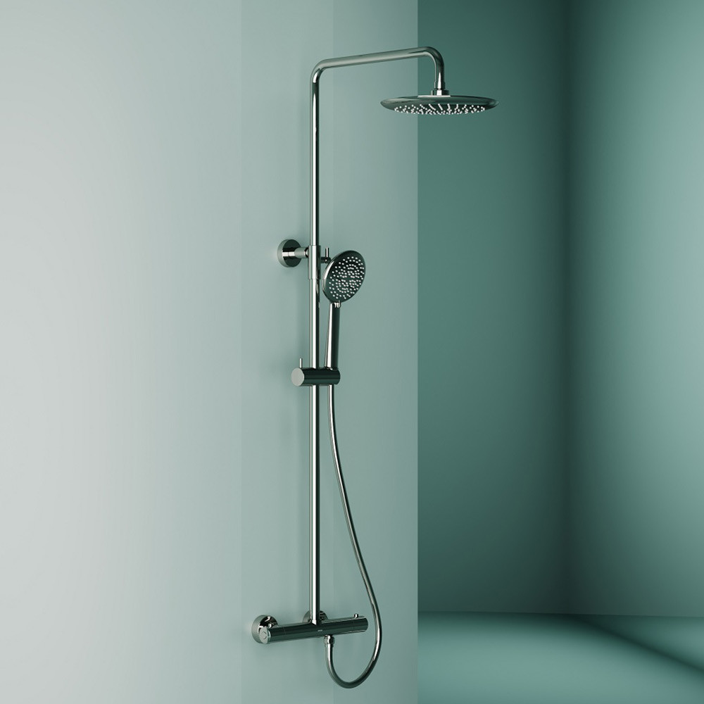 Душевая стойка Sancos Game для душа с термостатическим смесителем, верхним, ручным душем и шлангом в комплекте, цвет хром. Штанга с возможностью регулировки по высоте и настройкой направления потока воды, удобное переключение между потребителями воды на ручке смесителя, возможность настройки высоты ручного душа с 5 ю режимами струи и легким переключением между режимами.