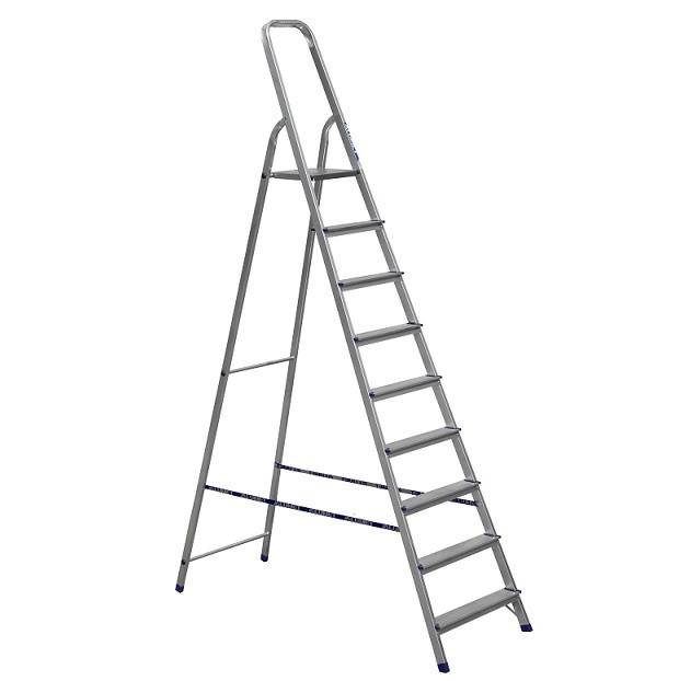- Стремянка алюминиевая односторонняя Алюмет АМ709 9 ступеней