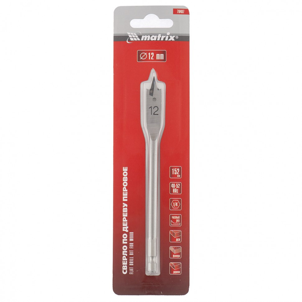 Сверло перовое по дереву Matrix 70407 12 мм